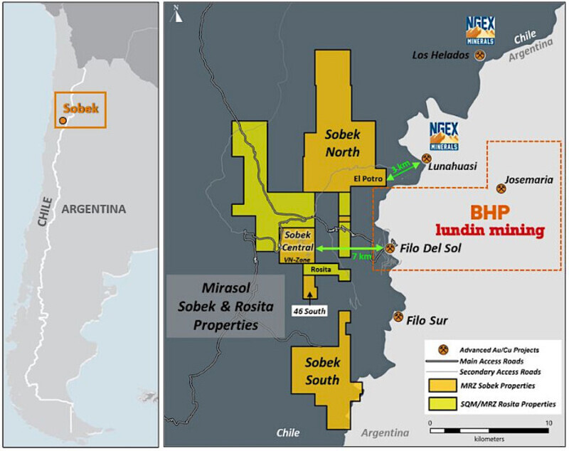 Mirasol, with its extensive portfolio of projects in Argentina and Chile, is especially worth noting for its Sobek Project, located in close proximity to Filo del Sol and NGEX’s Lunahuasi discovery in the Vicuña District of northeast Chile. The company typically deploys the prospect‑generator biz model, but Sobek is wholly owned—be bold and mighty forces will come to your aid (someone once said that).